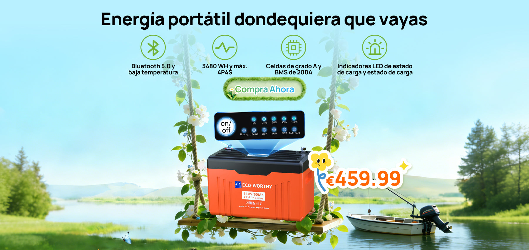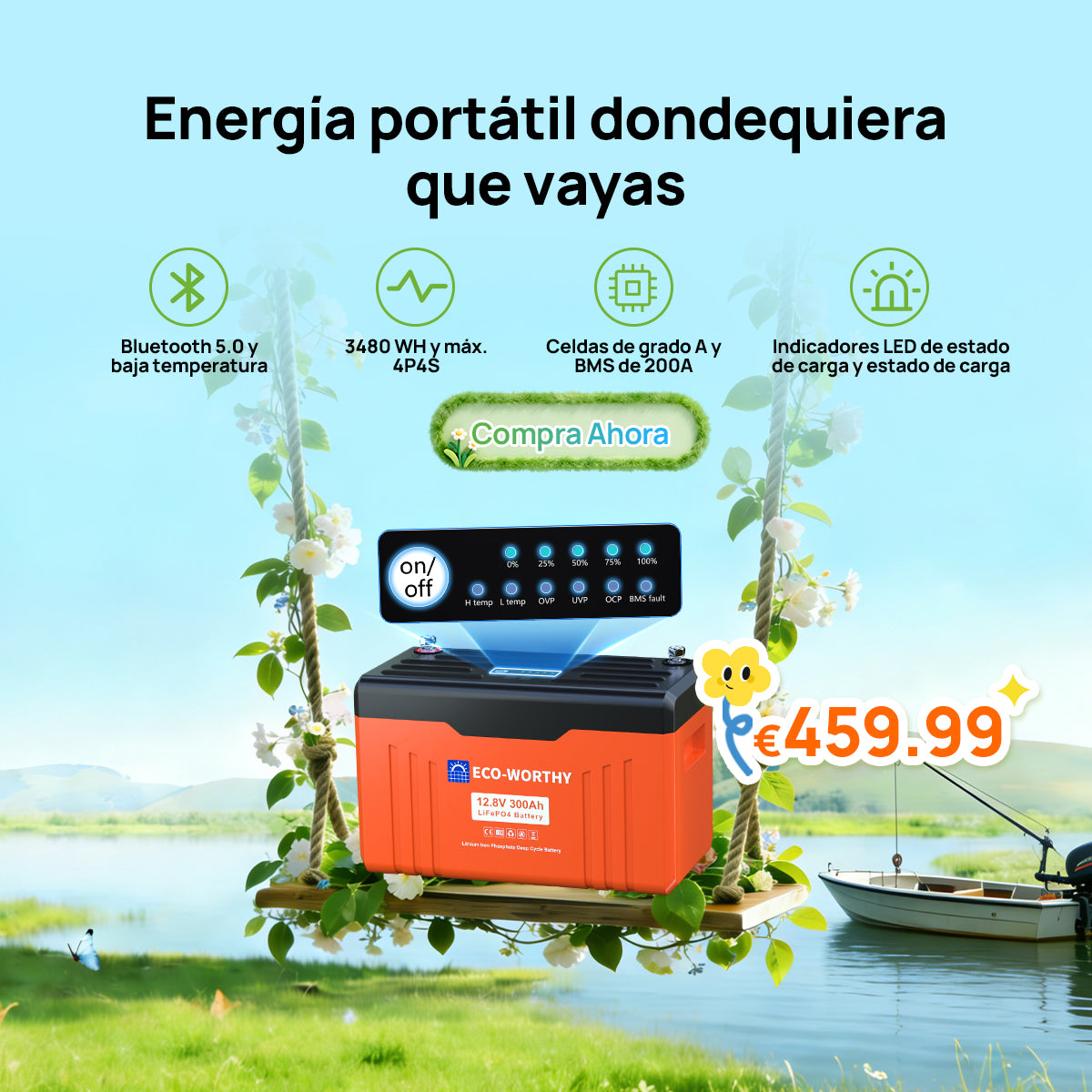 Batería de litio LiFePO4 de 12V y 300Ah con Bluetooth