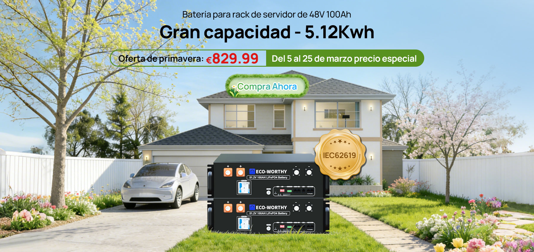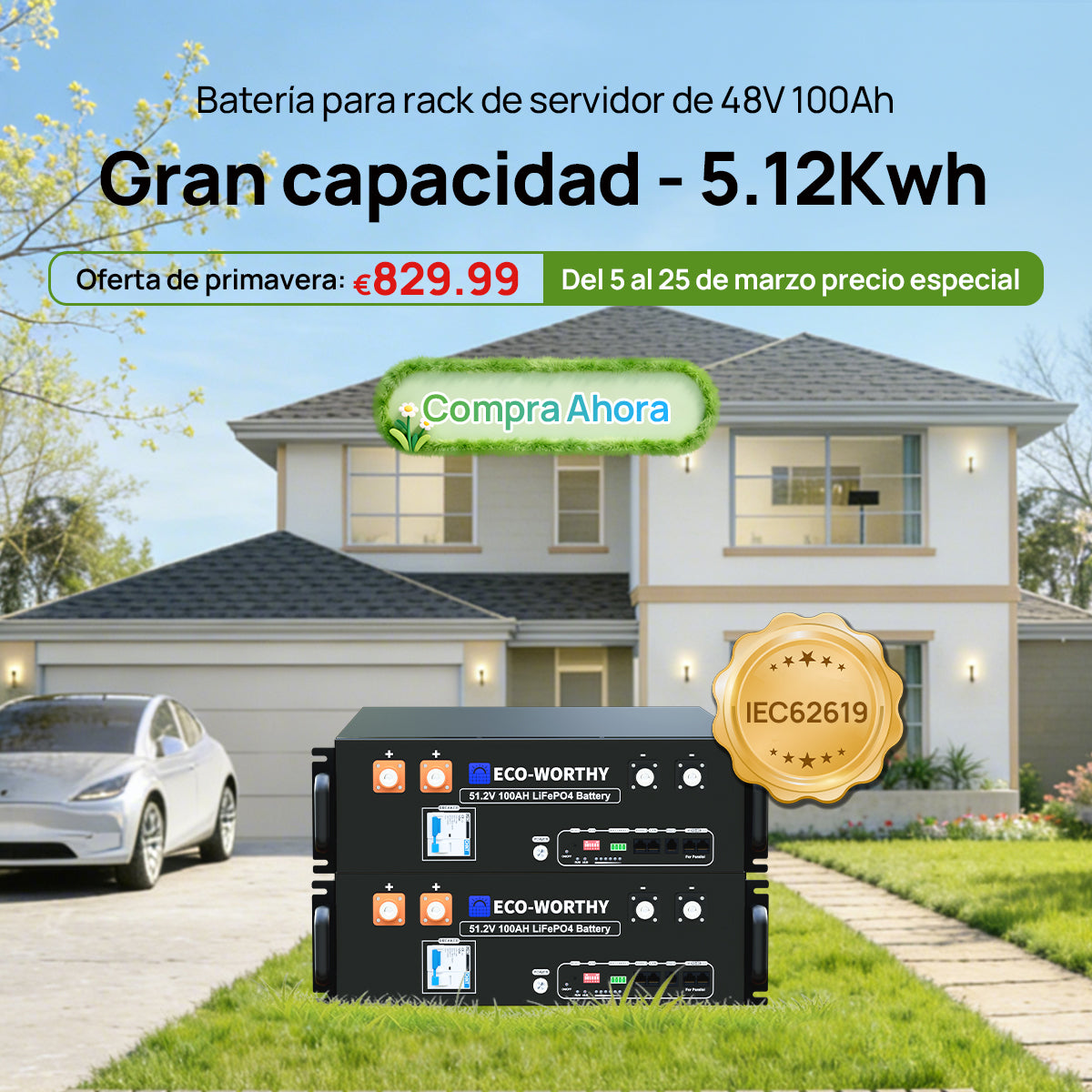Batería para rack de servidor ECO-WORTHY de 48V(51,2V) 100 Ah LiFePO4, tamaño 3U, con Bluetooth y wifi-Versión 3