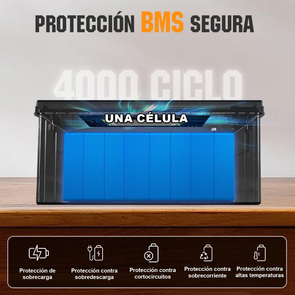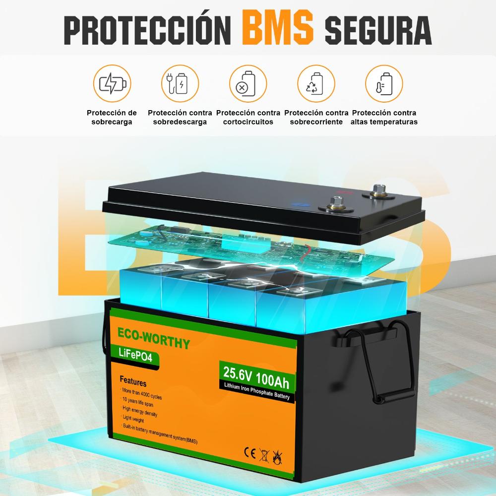 | Voltaje de la batería: 25.6V | Corriente máxima de carga/descarga: 100A / 100A |