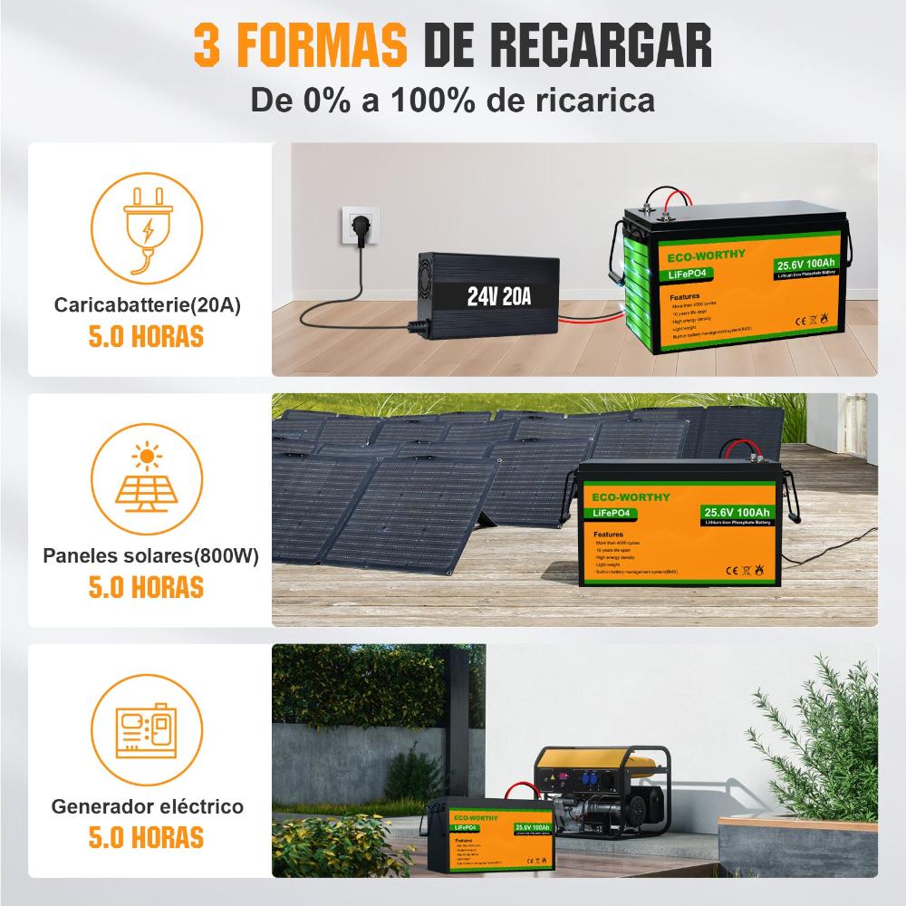 ·Durabilidad: Una batería de litio ECO-WORTHY dura 8 veces más que una batería de plomo ácido. Con 3000 ciclos al 80% nos permiten extraer mucha mas energía de la batería durante su vida útil.