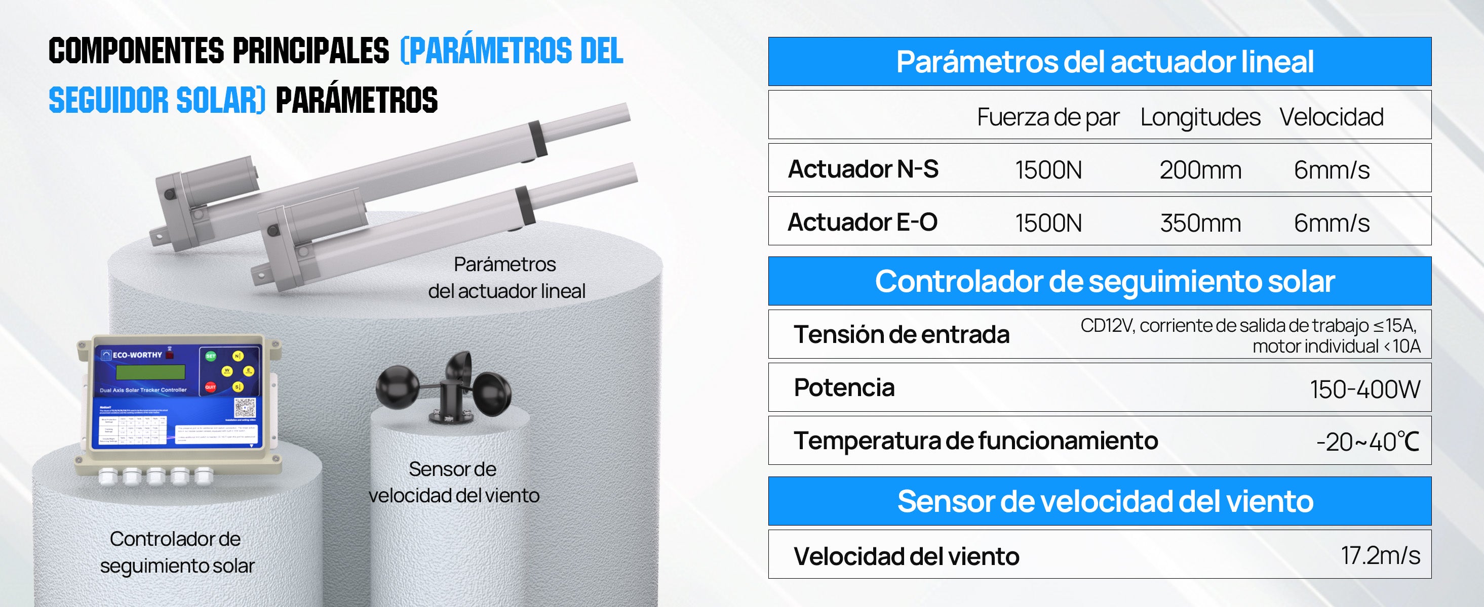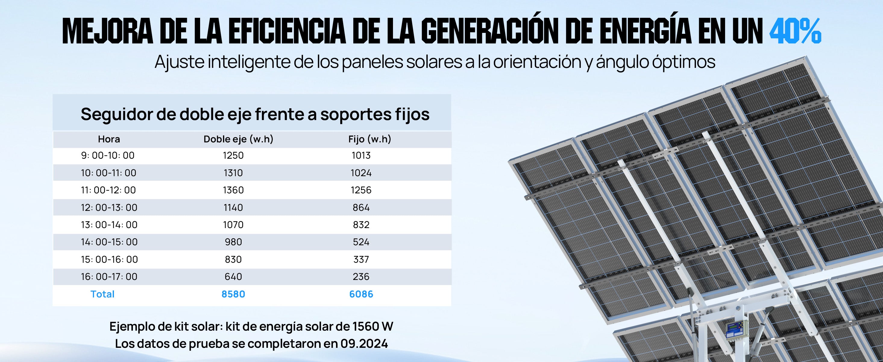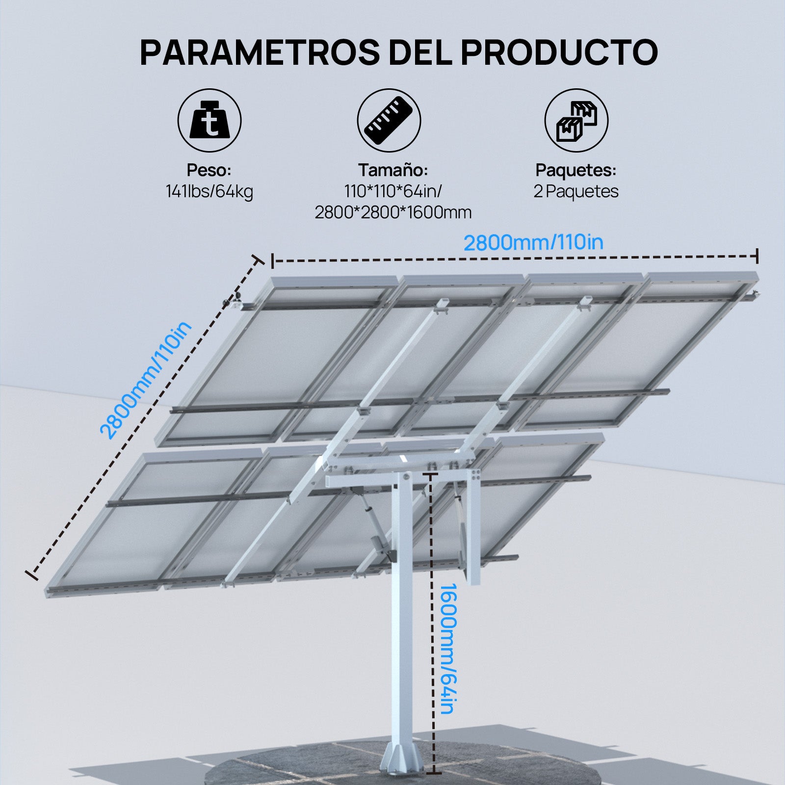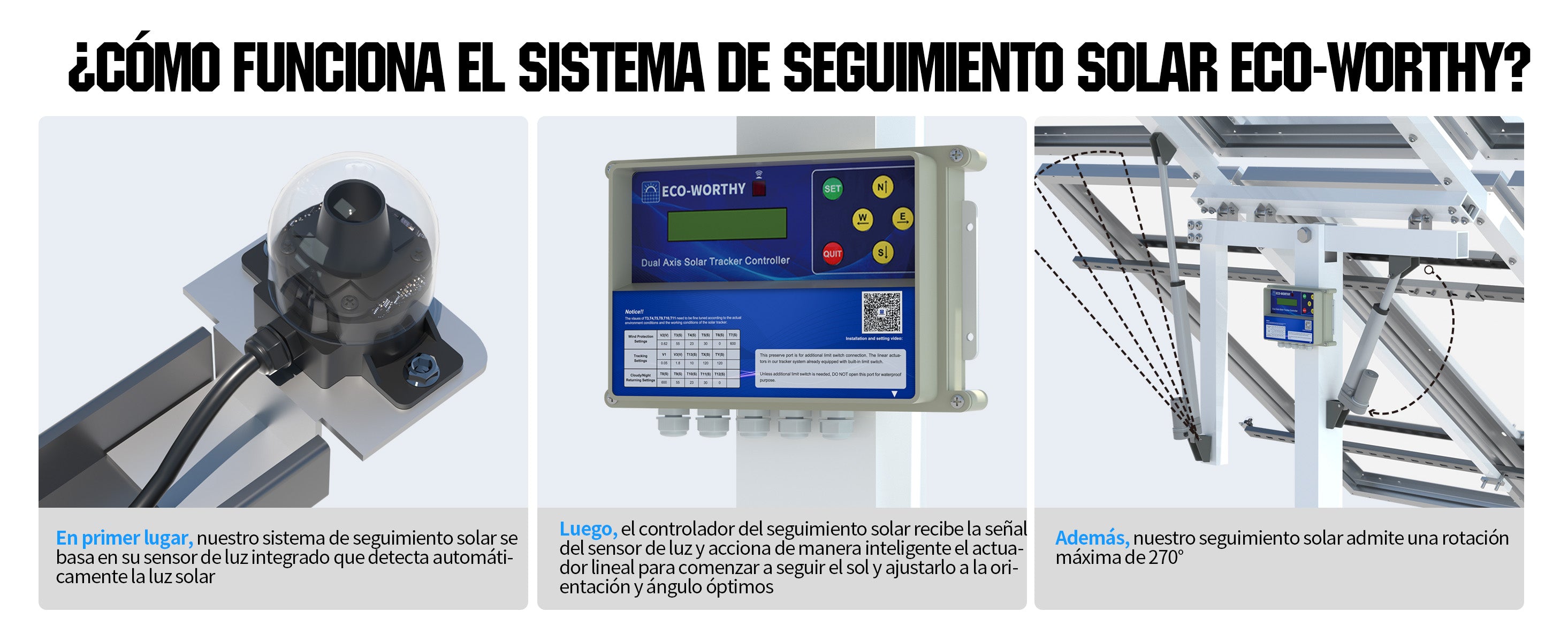 Sistema de seguimiento solar de doble eje ECO-WORTHY (versión extendida, +40% de eficiencia) con controlador de seguimiento