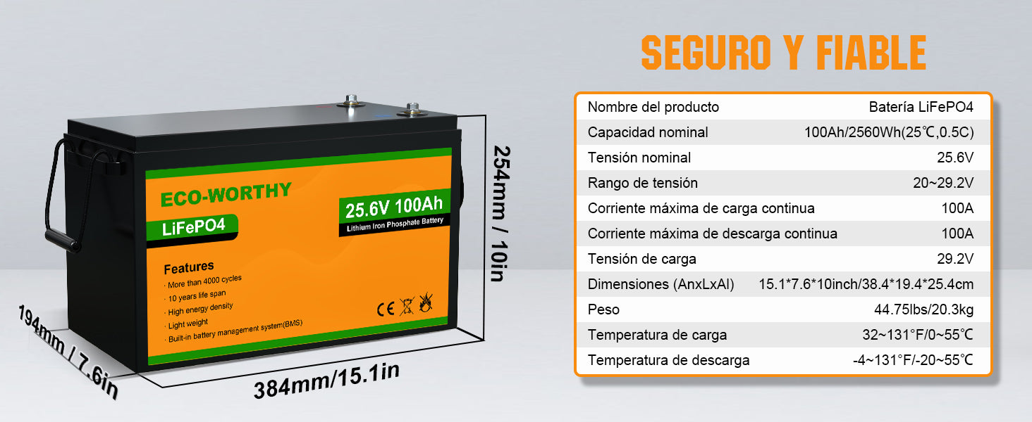·Durabilidad: Una batería de litio ECO-WORTHY dura 8 veces más que una batería de plomo ácido. Con 3000 ciclos al 80% nos permiten extraer mucha mas energía de la batería durante su vida útil.