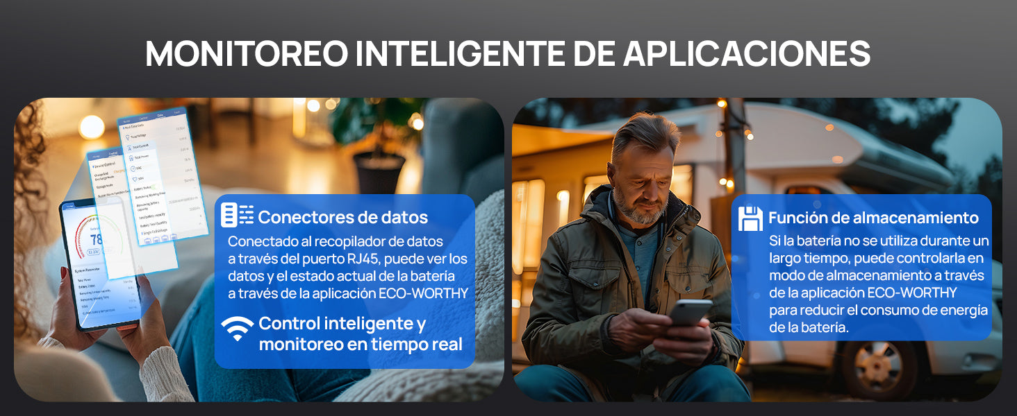 ·[Versatilidad y capacidad de ampliación]: amplía el sistema a baterías 4P2S de 20,48 kWh, ideal para soluciones de almacenamiento doméstico y sistemas fuera de la red. El modo de memoria avanzada reduce la pérdida de energía y protege las células.