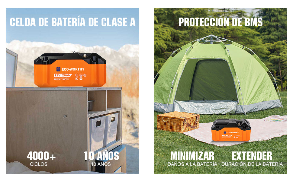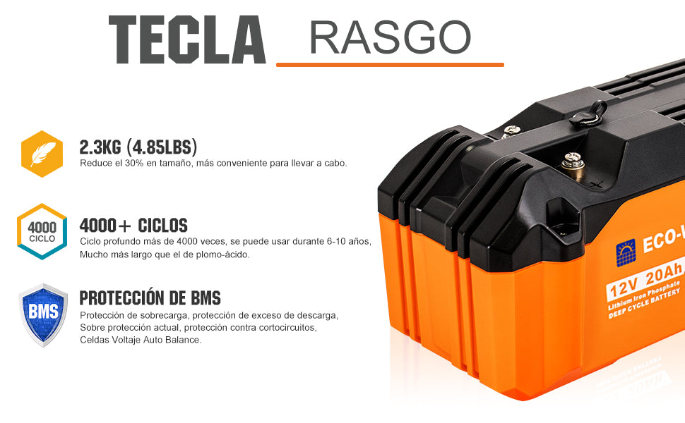 Voltaje de la batería: 12.8V | Corriente máxima de carga/descarga: 20A |