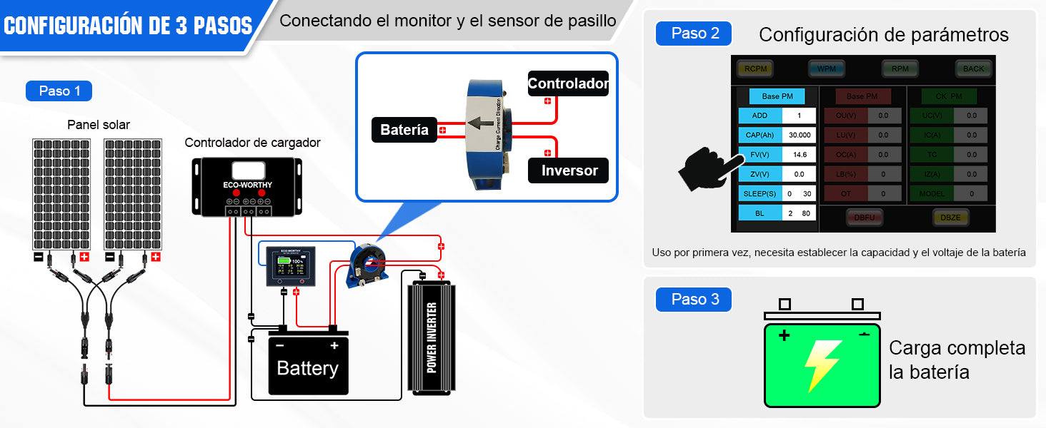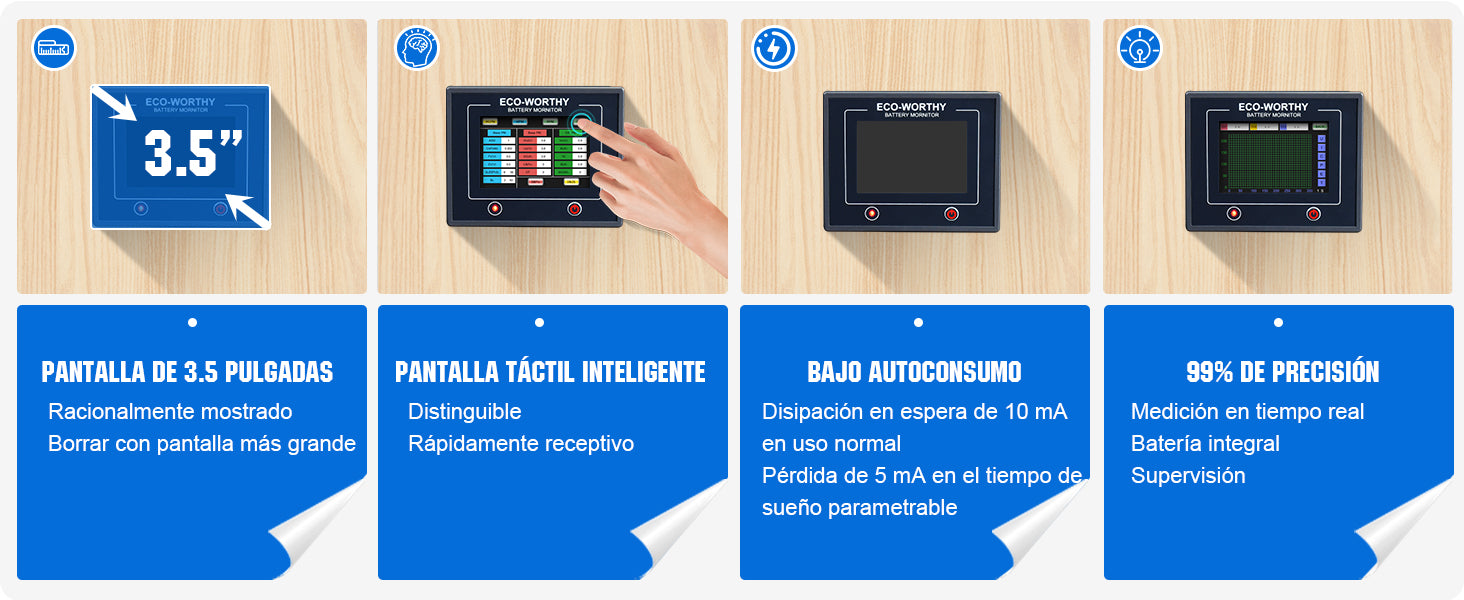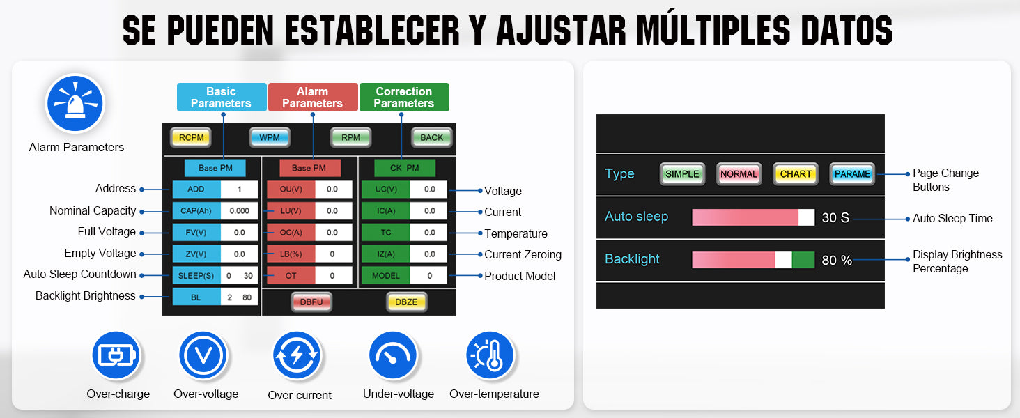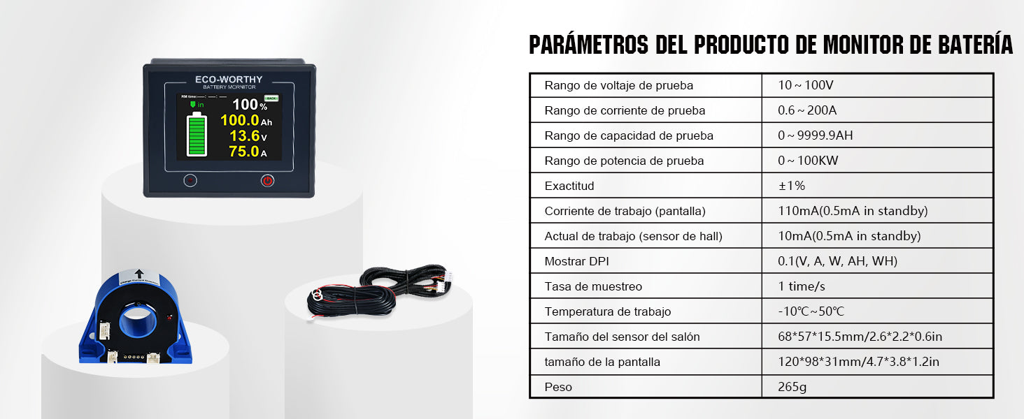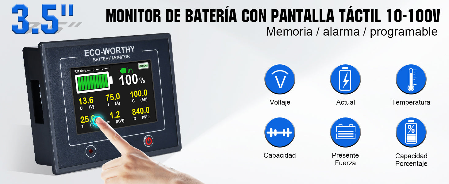 ·Datos precisos: las pantallas incluyen voltaje/corriente/potencia de la batería y capacidad actual, tiempo restante y porcentaje de volumen. Tiene función de retroiluminación para monitorear por la noche.
