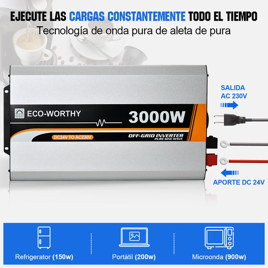 Inversor de Onda Sinusoidal Pura de 3000W de 24V a 220V para Kits Solares Aislada