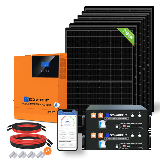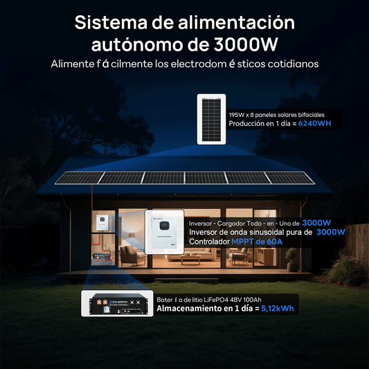 Sistema de respaldo doméstico ECO-WORTHY de 5,12 kWh con LiFePO4 de 48V 100Ah e inversor híbrido de 48V 3000W