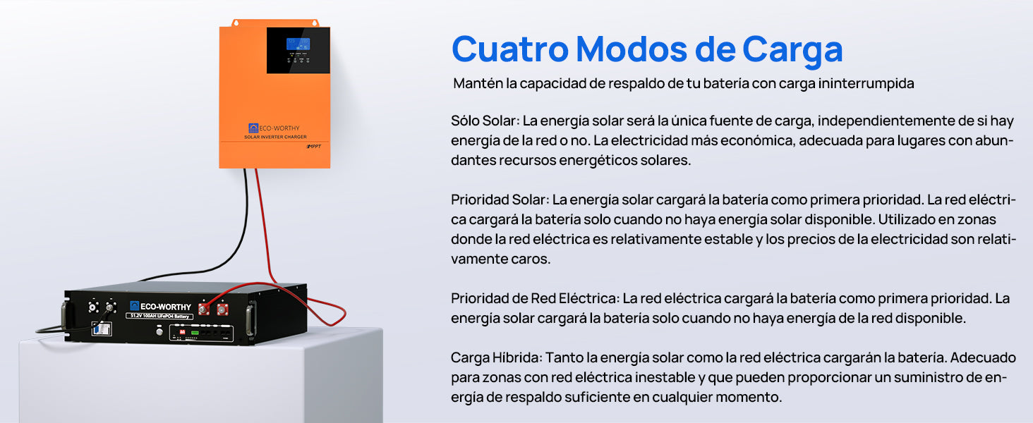 Energía de respaldo para el hogar ECO-WORTHY con LiFePO4 de 48V 100Ah e inversor híbrido de 48V 5000W