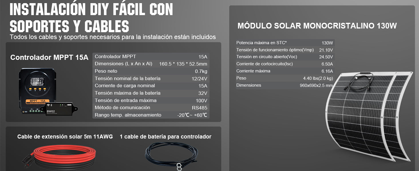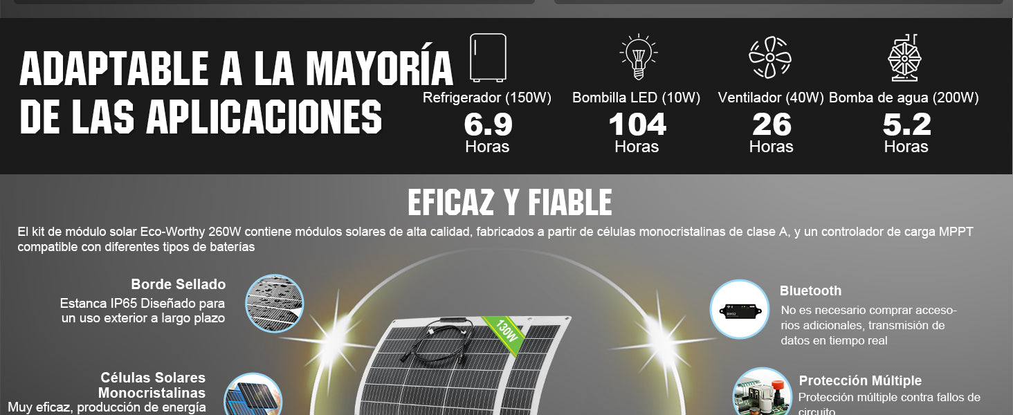 Kit Solar 260W 12V con Placas Flexibles