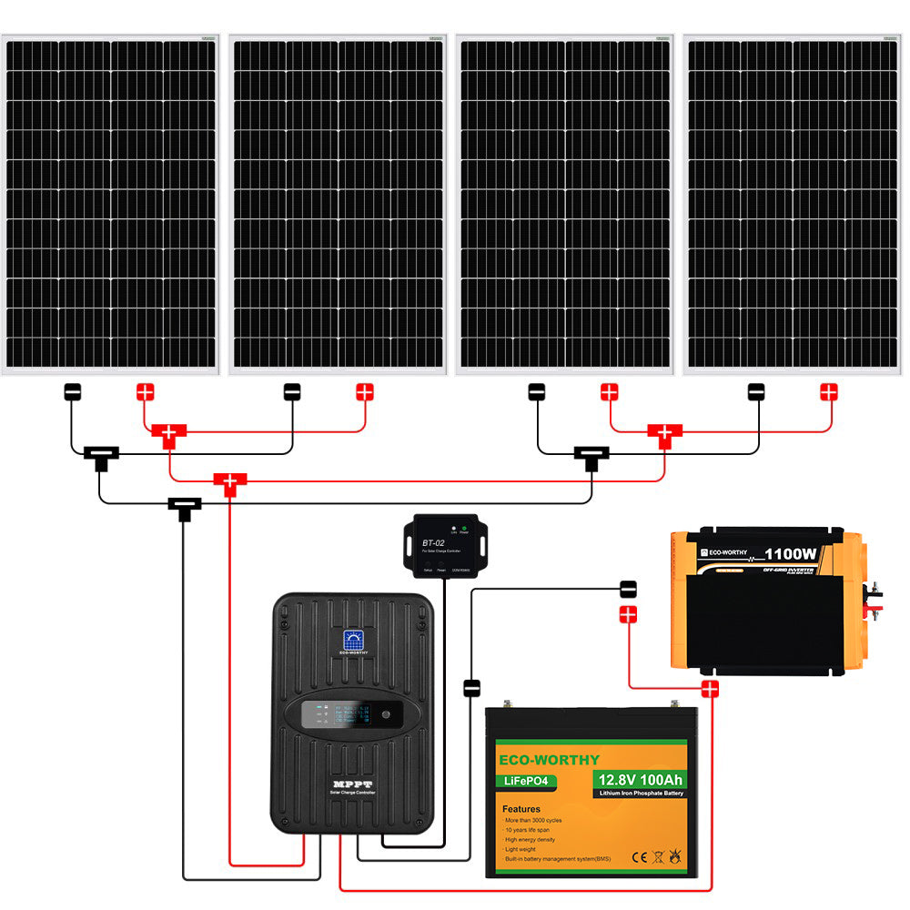 Con Batería Litio LiFePO4 de ECO-WORTHY con más de 3000 ciclos con profundidades de descarga del 95%, paneles solares con garantía de 25 años.