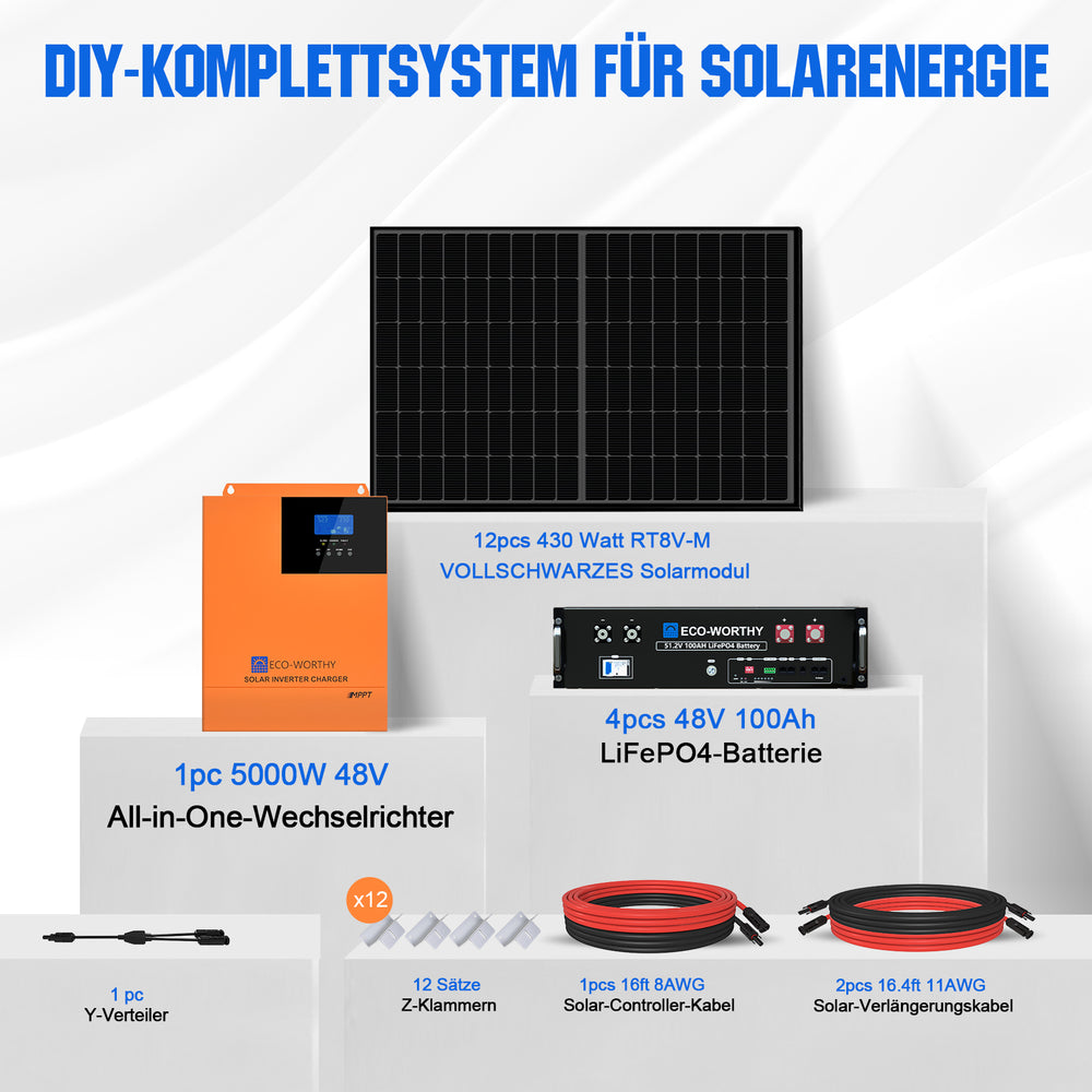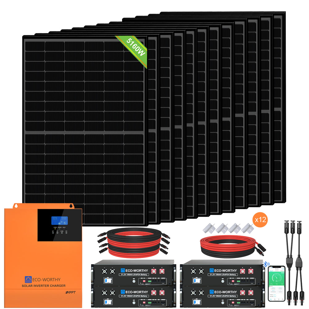Kit solar MPPT completo para autoconsumo fuera de la red 48V 5160W (12x 430W)