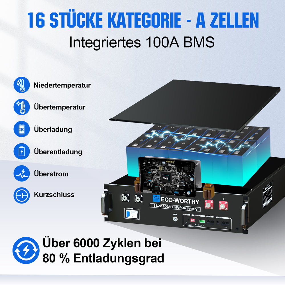 Batería para rack de servidor de 48V (51,2 V) y 100Ah