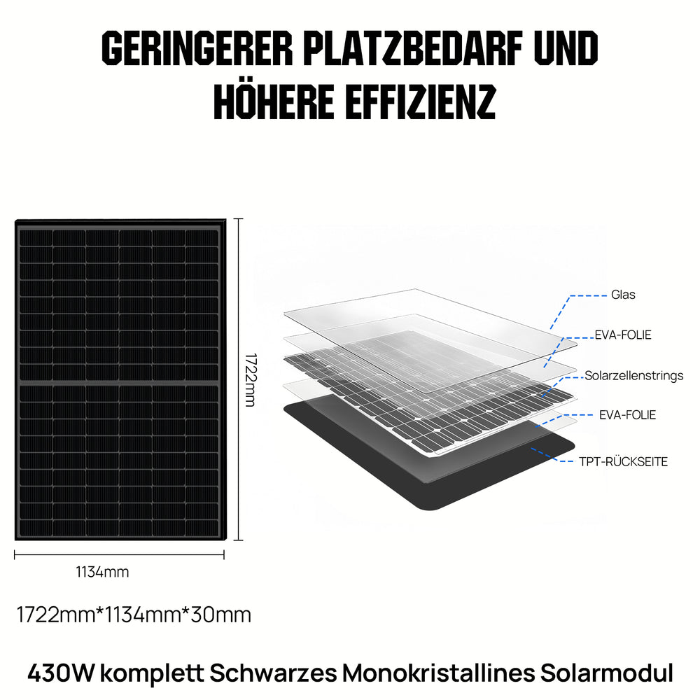 | Potencia nominal: 430W | Voltaje de circuito abierto (Voc): 37.84V |