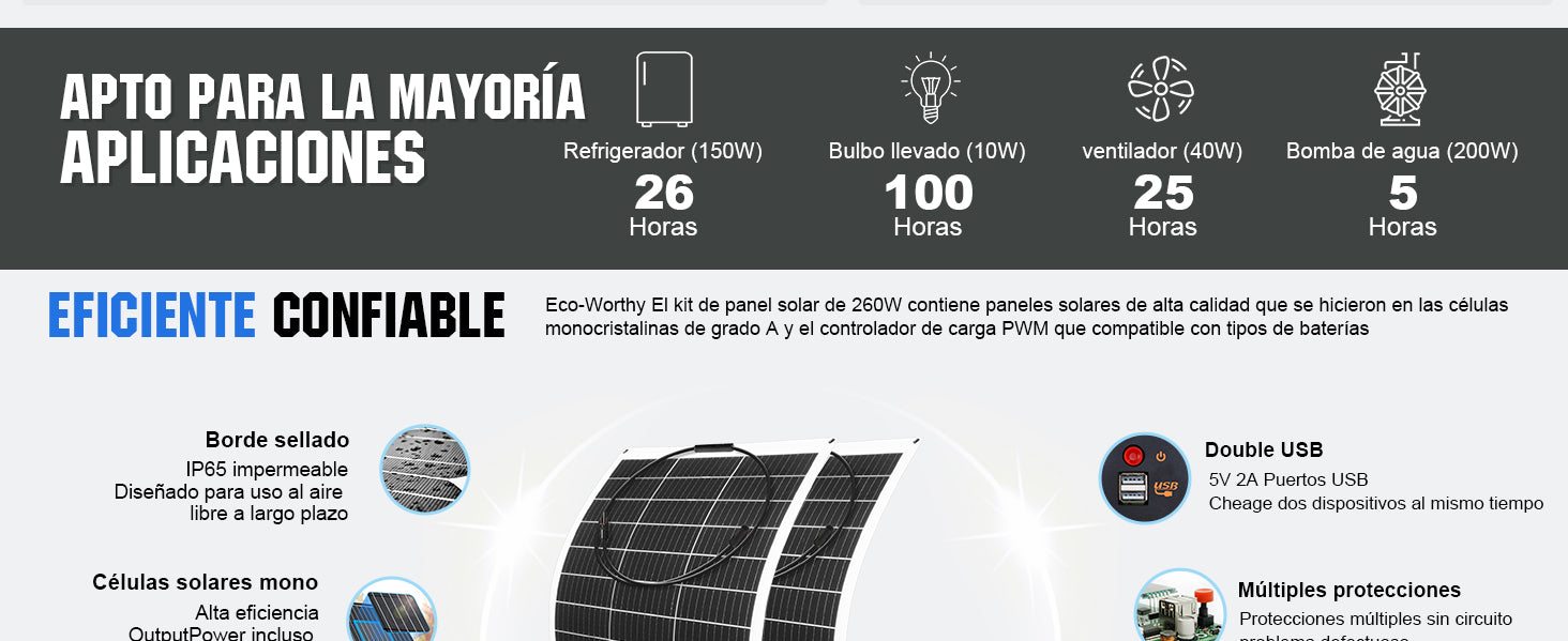 Este kit es ideal tanto como módulo solar para casas móviles como especialmente para uso marino en yates de vela, yates a motor y otros tipos de embarcaciones.