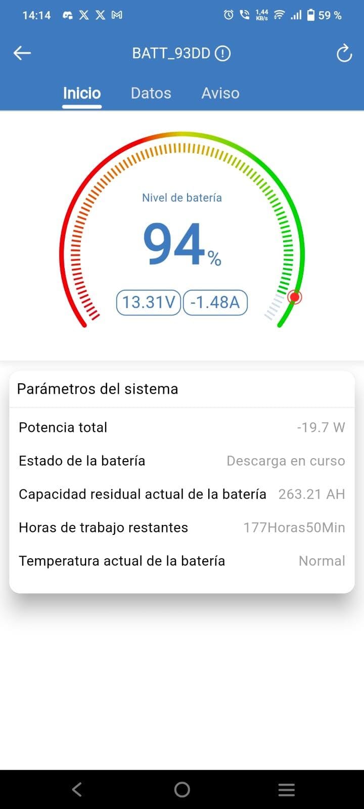 De momento no puedo decir nada pero bueno la primera impresión es que parece que todo funciona bien, eh completado la carga al cien que no sube a los amperios máximos la batería es de 280 y me sube máximo en 2,78 por ahí, solamente he hecho una descarga de cinco por ciento espero que vaya en el tiempo también como al principio