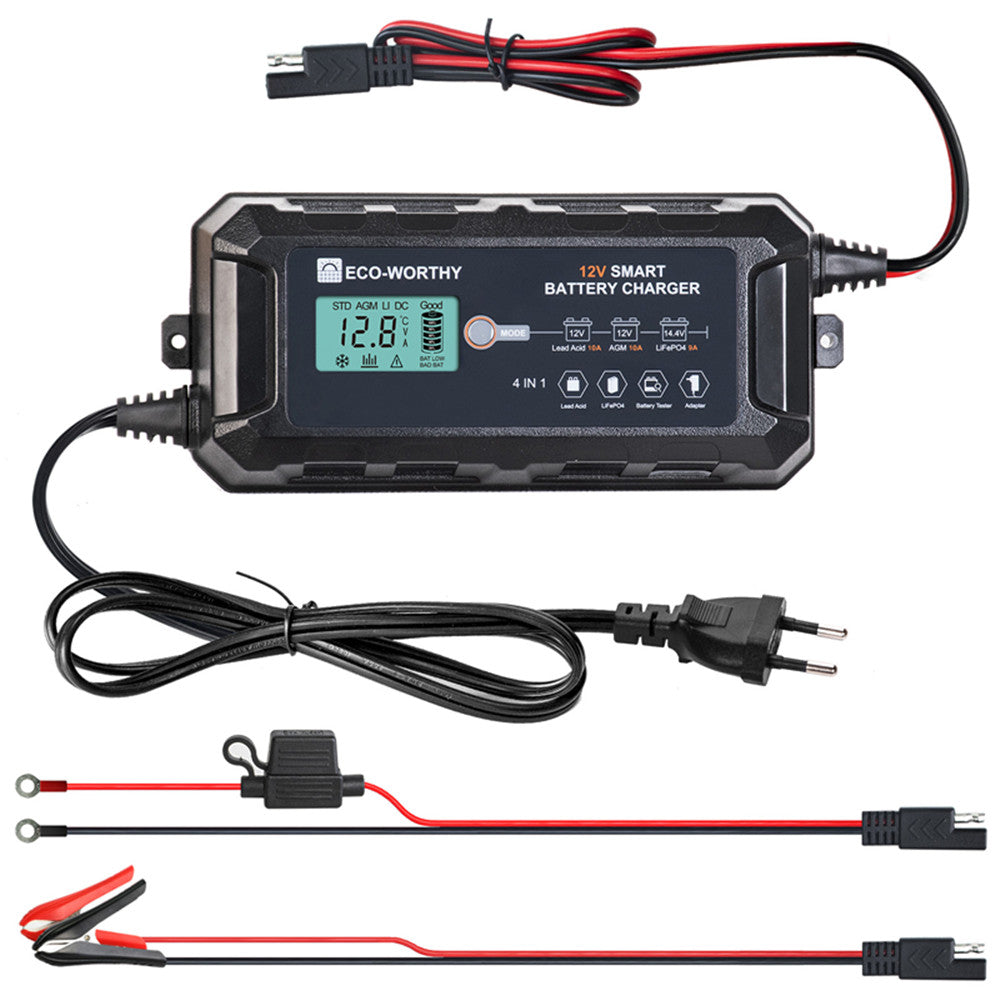 Cargador de batería inteligente automático de 5A y 10A 12V con pantalla LCD para baterías de litio (LiFePO4)
