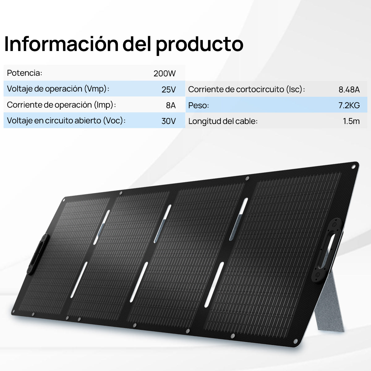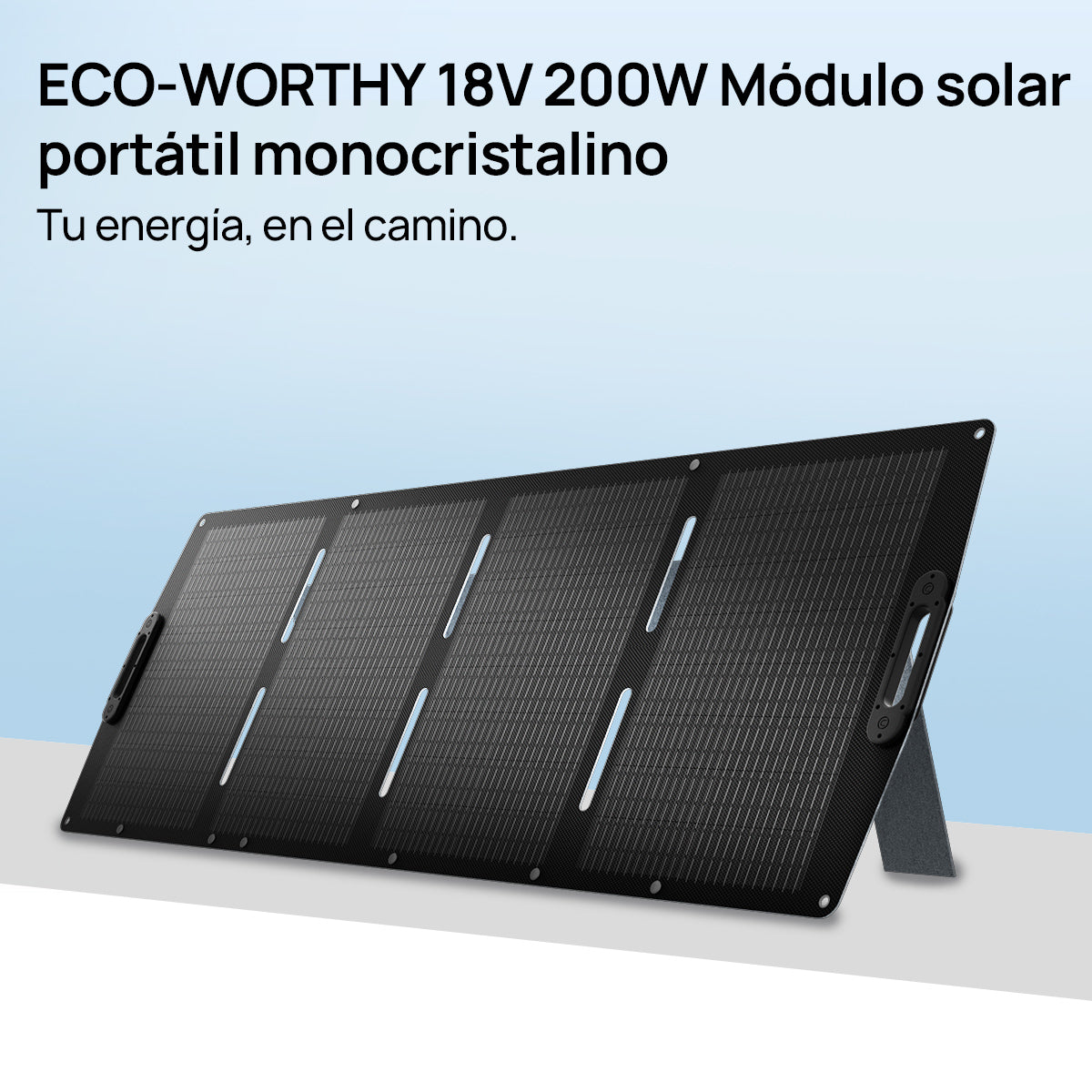 Pata de apoyo ajustable para mayor eficiencia: El panel solar plegable de 200 W incorpora una pata de apoyo integrada con múltiples ángulos, que optimiza la exposición al sol y aumenta la eficiencia de captación de energía en más de un 25 %.