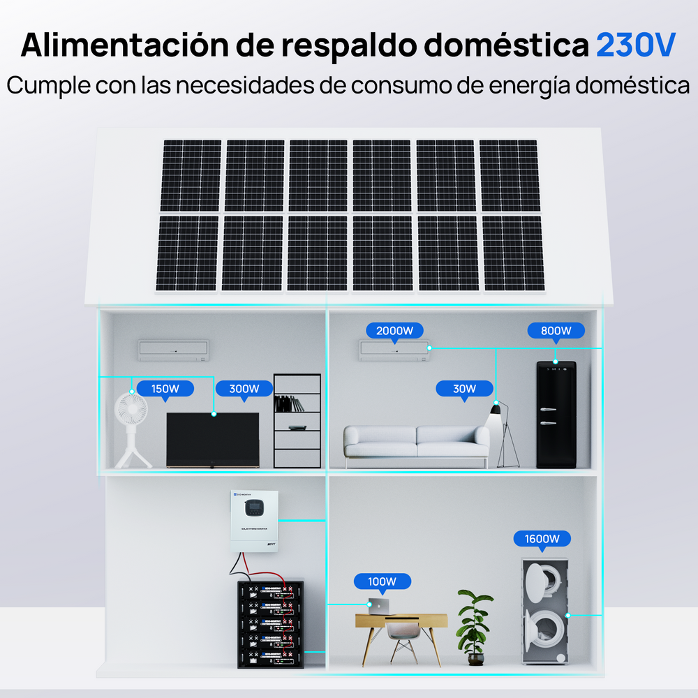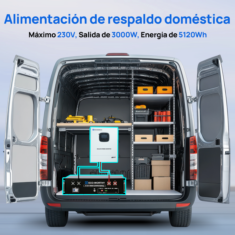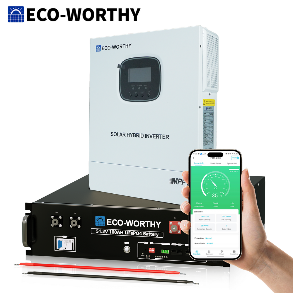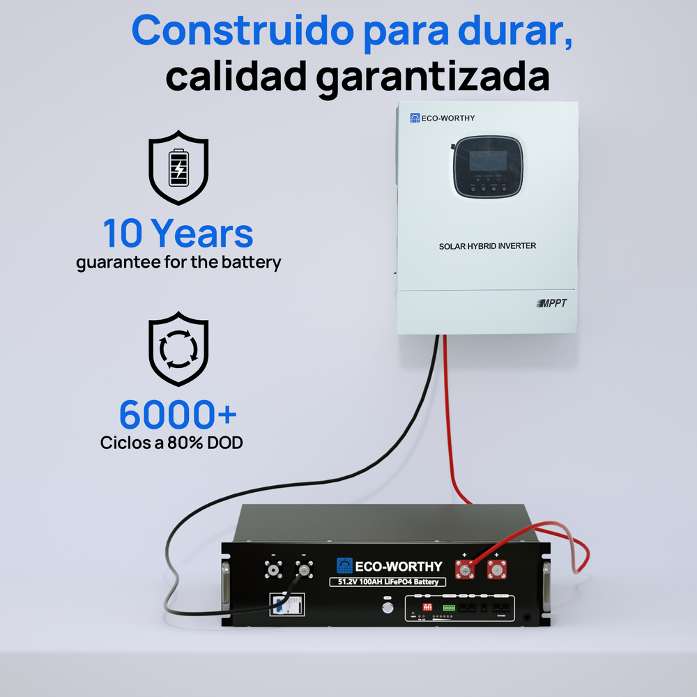 Sistema de respaldo doméstico ECO-WORTHY de 5,12 kWh con LiFePO4 de 48V 100Ah e inversor híbrido de 48V 3000W