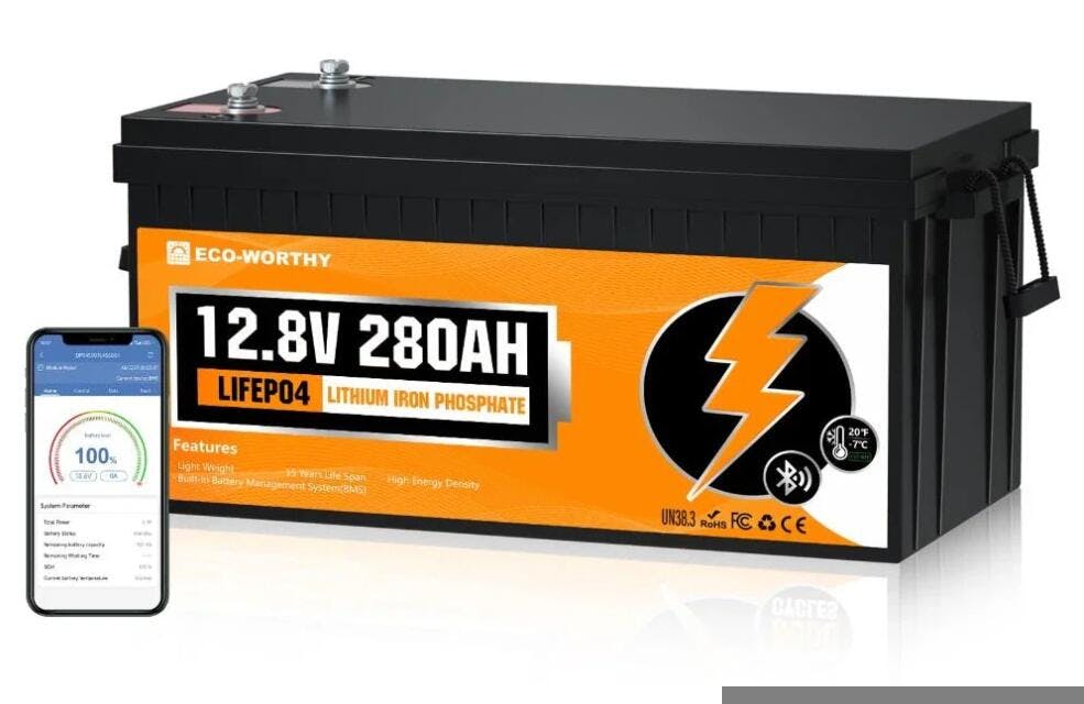 La batería ECO-WORTHY LiFePO₄ 280Ah 12V con función Bluetooth permite ver diversos datos de la batería (SOC) en tiempo real a través de la aplicación,